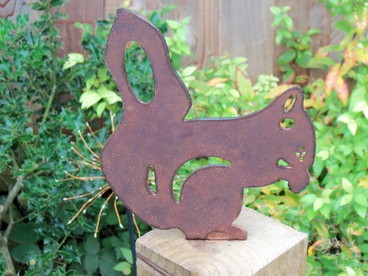 Rusty Metal SQUIRREL Garden Ornament. Rustic Fence Post Topper. Metal Garden Squirrel Decoration. Rusted Steel Garden Art. Birthday Gift.