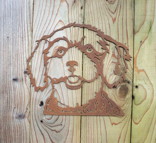 Rusty Metal POODLE DOG Face Garden Ornament. Rustic Garden Decor. Metal Garden Dog Decoration. Rusted Steel Garden Art. Vintage Gift.