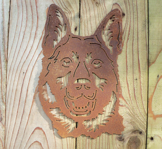 Rusty Metal GERMAN SHEPHERD HAPPY DOG Face Garden Ornament. Rustic Garden Decor. Metal Garden Dog Decoration. Rusted Steel Garden Art. Vintage Gift.