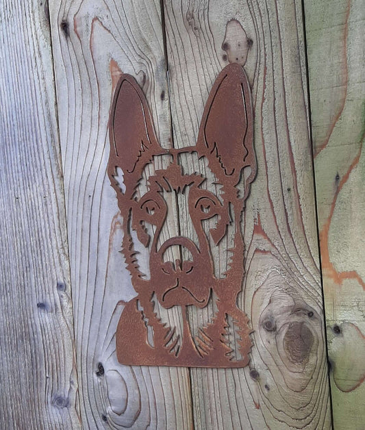 Rusty Metal GERMAN SHEPHERD DOG Face Garden Ornament. Rustic Garden Decor. Metal Garden Dog Decoration. Rusted Steel Garden Art. Vintage Gift.