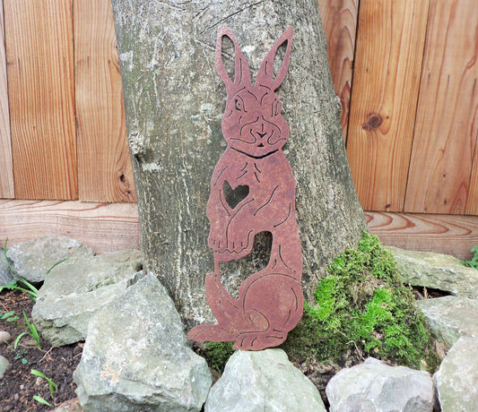 Rusty Metal RABBIT Garden Ornament. Rustic Garden Decor. Metal Garden Rabbit Decoration. Rusted Steel Garden Art. Birthday Gift for Mum.