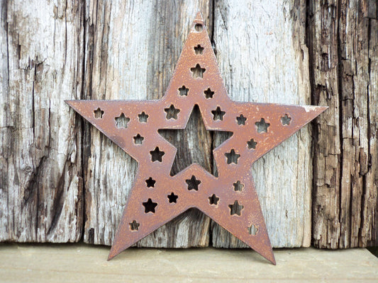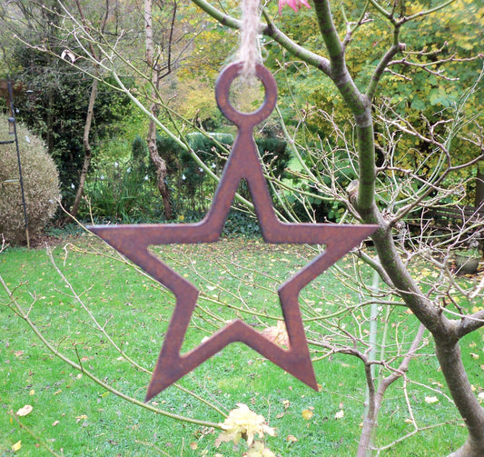 Rusty Metal STAR of STARS Hanging Garden Ornament. Rustic Garden Decor. Rusted Steel Garden Art. Metal STAR Garden Decoration Christmas Gift