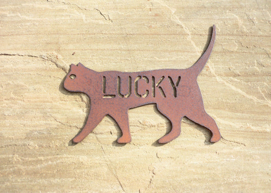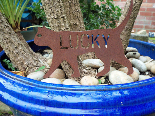 Personalised Rusty Metal CAT Sign Garden Ornament. Rustic Garden Decor. Metal Garden Cat Decoration. Rusted Steel Garden Art. Birthday Gift.