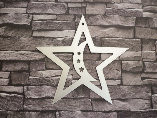 Metal STAR with MOON Hanging Garden Ornament. Rustic Garden Decor. Metal STAR Decoration. Steel Home & Garden Wall Tree Art. Christmas Gift
